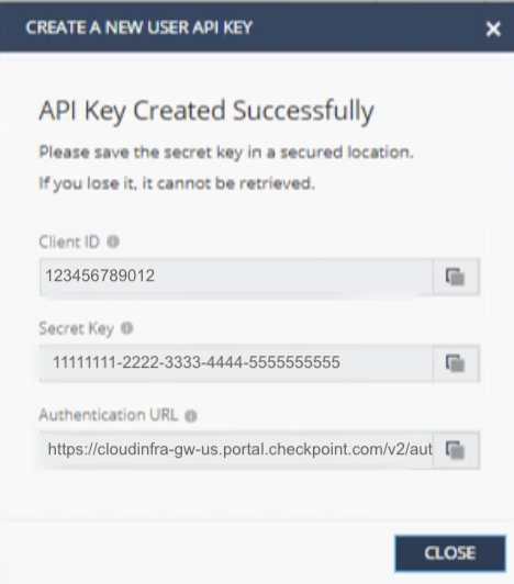 For additional information, see the [Check Point Infinity Portal API Keys Documentation](https://sc1.checkpoint.com/documents/Infinity_Portal/WebAdminGuides/EN/Infinity-Portal-Admin-Guide/Content/Topics-Infinity-Portal/API-Keys.htm).