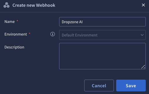 * Name the Webhook something memorable, such as Dropzone AI