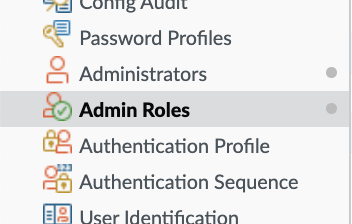 <figure><img src="https://435022081-files.gitbook.io/~/files/v0/b/gitbook-x-prod.appspot.com/o/spaces%2FmBVcKuiytGCsIDpL70BC%2Fuploads%2Fgit-blob-446d05b1027c98cb54f9cd6e8d8e8a2fa6d04b39%2Fpalo-alto-2.png?alt=media" alt=""><figcaption><p>Navigate to Admin Roles</p></figcaption></figure>
