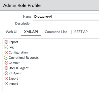* Name the Admin Role Profile something memorable, such as "Dropzone-AI"