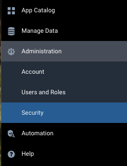 * In the bottom left hand corner of the Sumo Logic homepage, click on Administration > Security