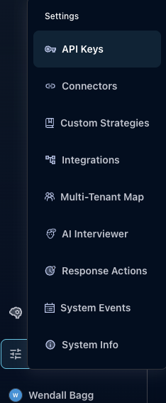 * In the bottom left hand corner, navigate to Settings > API Keys